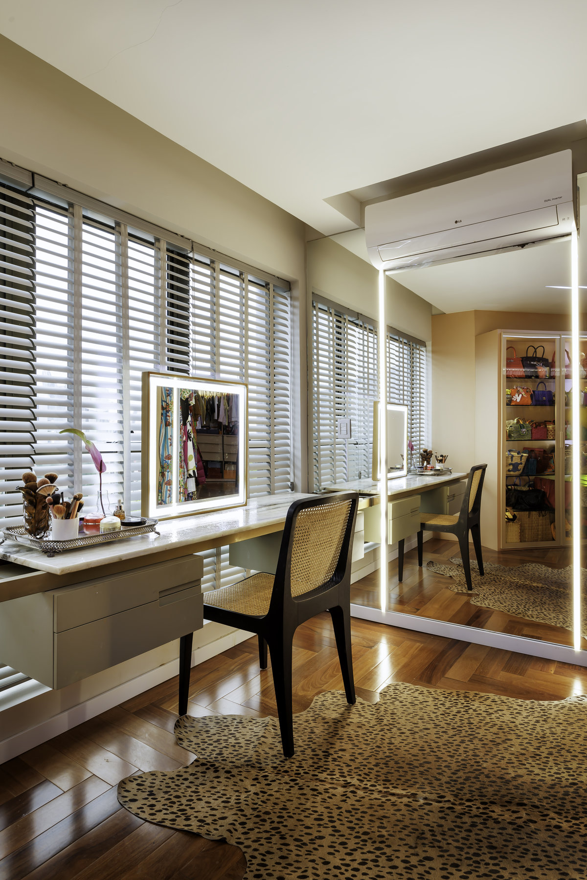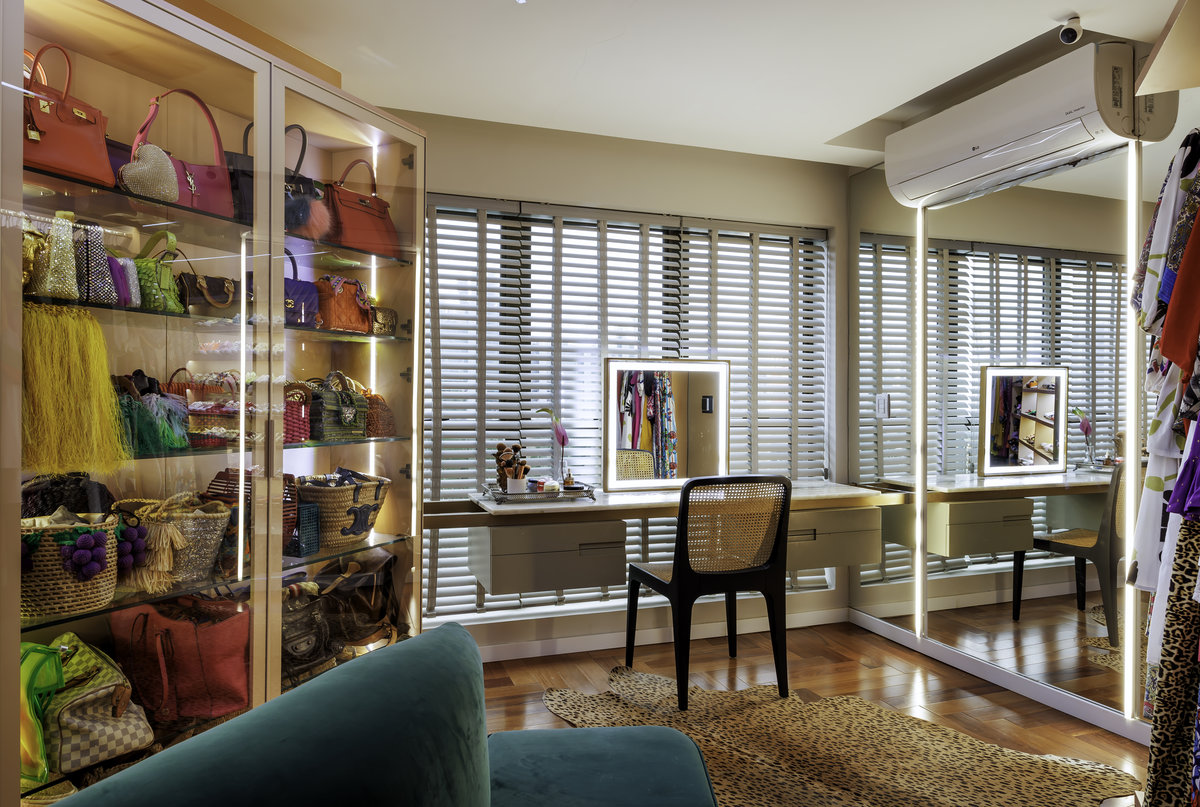 A proposta do projeto foi traduzir essa vivência cosmopolita e cheia de repertório em um espaço contemporâneo, vibrante e funcional. A paleta neutra nas paredes e no mobiliário principal cria um plano de fundo que valoriza o design autoral e as peças afetivas — como livros, arte e objetos garimpados mundo afora.