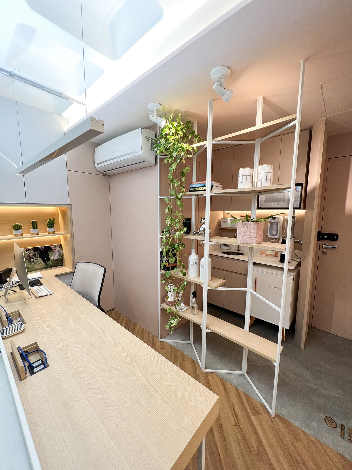 Este projeto corporativo foi desenvolvido com o objetivo de criar um escritório contemporâneo, acolhedor e funcional para uma empresa, com uma liderança feminina, de fotografia voltada para casamento!